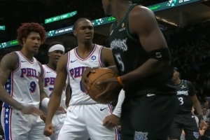 谈到马克西今天隔扣了他,爱德华兹表示:“他是联盟里我最喜欢的球员之一。他今天还隔扣了我,这让我不太爽。”
