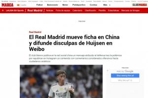 体育资讯02月23日讯 西媒马卡报、阿斯报今日均报道了赫伊森转发辱华内容的事件,文章内容谈到皇马的微博道歉引发中国球迷不满,以及皇马在2024年就曾卷入过类似的争议。