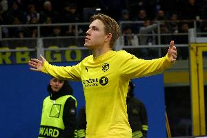 体育资讯2月26日讯 欧冠淘汰赛附加赛次回合,博德闪耀客场2-1战胜国际米兰,两回合总比分5-2晋级欧冠16强。此役博德闪耀前锋海于格首发踢满全场,传射建功发挥出色。《米兰体育报》撰文谈到海于格的表现。