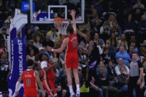 防守建功!波尔津吉斯镇守篮下 连续起飞送出2次大帽