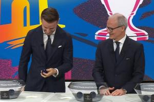 体育资讯02月27日讯 欧冠1/8决赛抽签请来拉基蒂奇当嘉宾,上来第一组最关键的皇马vs葡体还是曼城抽签,拉基蒂奇居然手滑拧不开!
