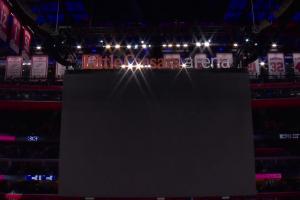 比赛进行至第三节还剩7分24秒时,现场喇叭声狂响不停,比赛被迫中断。