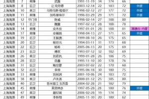 后卫:3-蒋光太、4-王燊超、5-张琳芃、13-魏震、19-王振澳、22-杨希、23-傅欢、28-岳鑫、31-鲍世蒙、32-李帅、40-吾米提江、54-王东承、56-姜宇斐