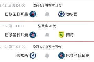 若巴黎vs南特的法甲延期,那么巴黎3月对阵切尔西的两回合欧冠之间将没有其他比赛,球队可以避免一周双赛。