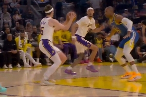 迪文岑佐扑防森萨博被吹三分犯规 回放后改判森萨博踢腿进攻犯规