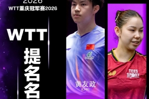 体育资讯3月4日讯 WTT重庆冠军赛外卡公布,国乒选手温瑞博、黄友政、石洵瑶通过提名和外卡进入本次比赛。