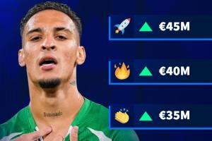 体育资讯03月12日讯 德转将在3月16日更新西甲球员身价,目前已经放出了贝蒂斯前锋安东尼的身价变化预热。