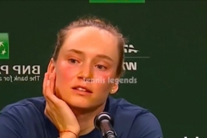 体育资讯3月16日讯 WTA1000印第安维尔斯决赛,萨巴伦卡2-1逆转莱巴金娜夺冠,莱巴金娜出席了赛后发布会。