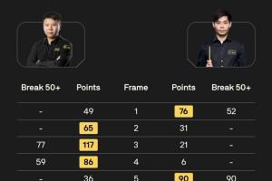 斯诺克世界公开赛32进16轮次,傅家俊5-3击败马丁·奥德奈尔晋级