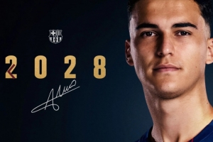 科尔特斯的续约仪式在甘珀体育城举行,而且今天正好是他的21岁生日。2021年夏天,科尔特斯从萨拉戈萨青年队加盟巴萨。起初,他加入了俱乐部青年B队,在适应了一个赛季后,他在2022-23赛季被租借到达姆参加荣誉联赛。