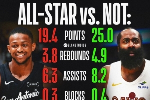 美媒Slamstudios晒出上图并写道:“哈登的全明星被抢了?”