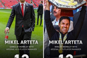 在球员时代和担任主教练后,阿尔特塔在温布利共参加了12场比赛,全部取得胜利。