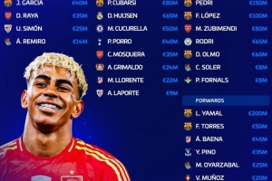 佩德里(1.5亿欧)、费尔明(1亿欧)、苏维门迪(8000万欧)、罗德里(6500万欧)、奥尔莫(6000万欧)、卡洛斯·索莱尔(800万欧)、福纳尔斯(800万欧)