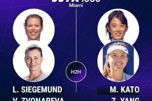 WTA1000迈阿密双打首轮:杨钊煊/加藤未唯2-1西格蒙德/兹沃娜列娃
