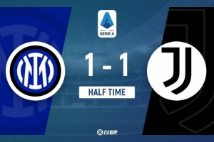 上半场伤停补时2分钟,半场结束,国际米兰暂1-1尤文图斯。