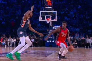 走神儿了?杜兰特单防东契奇 突然停顿双手张开送077上了个空篮
