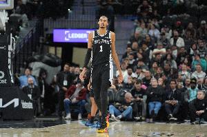 在首场比赛中,文班亚马出战10分钟,5中4,三分2中2,罚球4中4砍下14分6篮板3盖帽,正负值-8。