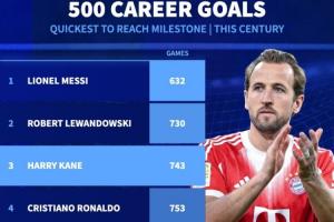 体育资讯02月17日讯 拜仁在上周末德甲3-0击败不莱梅,凯恩梅开二度,并解锁了生涯500球里程碑。