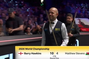 霍金斯10-4两届世锦赛亚军史蒂文斯,晋级斯诺克世锦赛16强