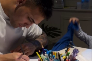 体育资讯2月20日讯 不久前,劳塔罗的妻子在社交媒体上晒出了劳塔罗与孩子画画的视频。