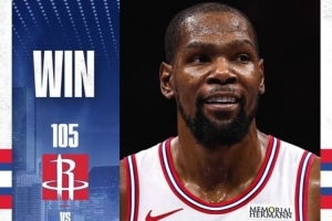 赛后火箭官方发布赢球海报,杜兰特成为封面人物。